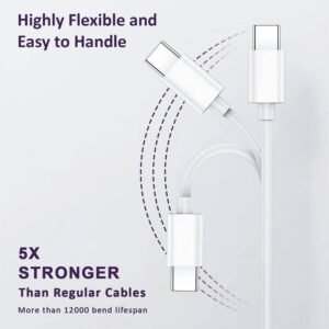 This cable supports PD 3.0 fast charging, making it perfect for iPhone 15–17, Samsung Galaxy S24/S23/S22, OnePlus 12R/11, Google Pixel 8/7/6, and MacBook/iPad models.