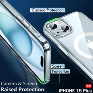 Protect your phone with the CASEGRAVITY transparent MagSafe case designed for iPhone 14 Plus and iPhone 15 Plus. This case offers crystal-clear clarity while keeping your device safe from daily damage.