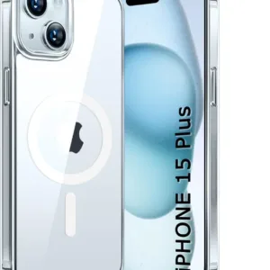 iPhone 14 Plus and iPhone 15 Plus transparent MagSafe case by CASEGRAVITY. Anti-yellow, shockproof design with strong magnetic grip. Fast delivery in India.